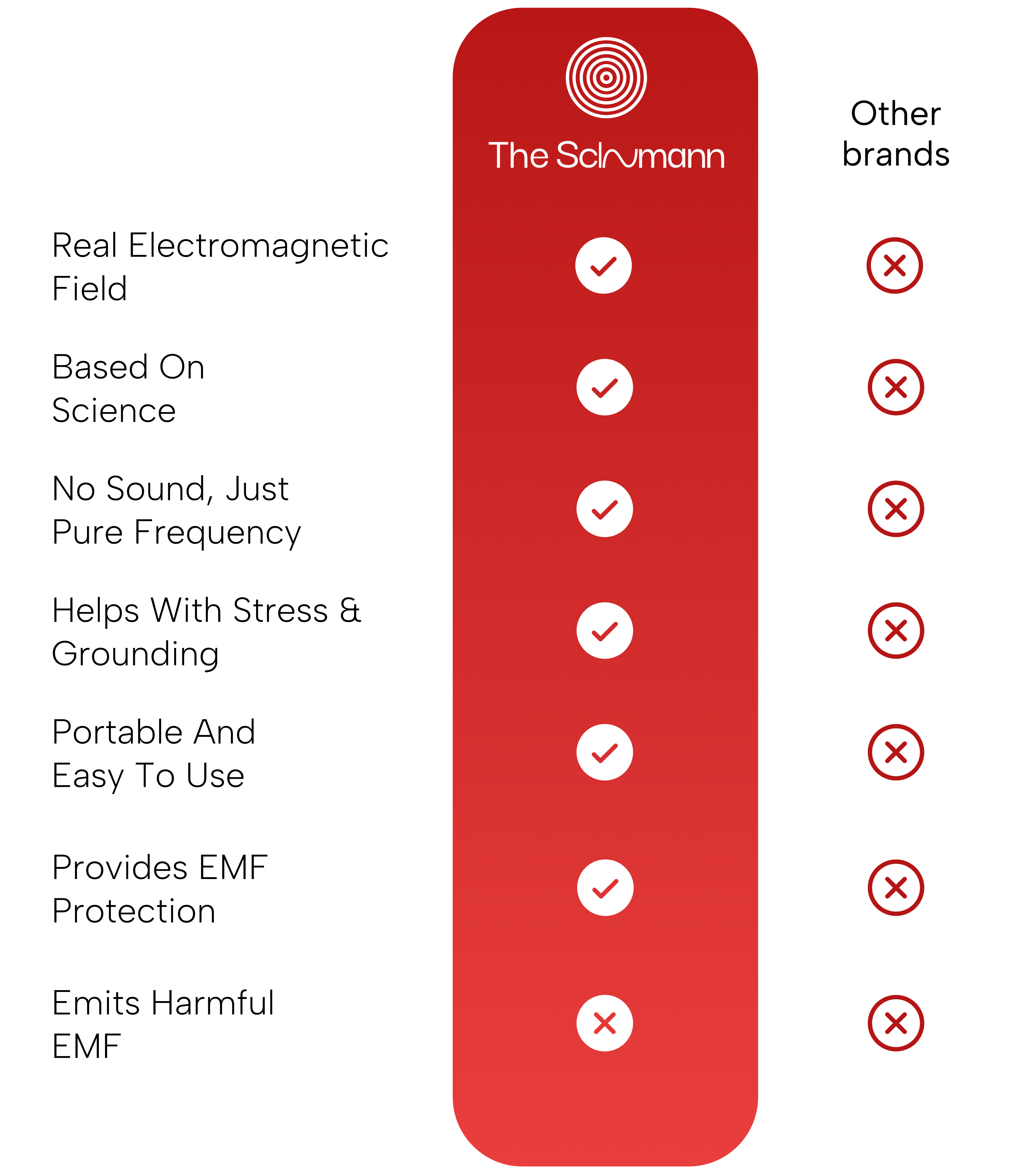 Think of it like magnets vs. pictures of magnets. Just as a photo of a magnet has no magnetic field, a phone playing a 7.83 Hz sound file doesn't generate the actual electromagnetic frequency. Our device creates real electromagnetic fields, like a physical magnet, that your body can actually interact with at the cellular level.