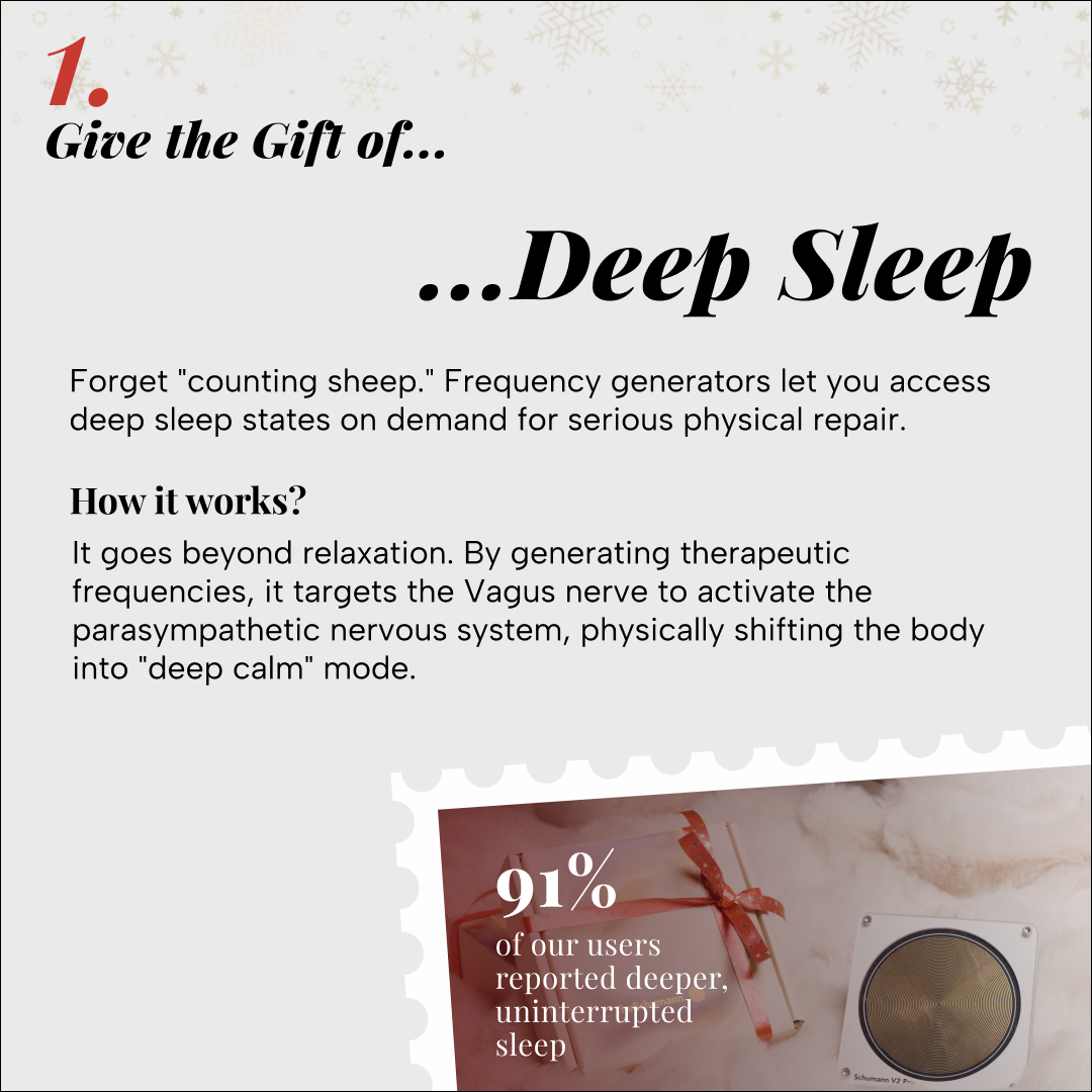 • 0.1–4 Hz (Delta Waves): Gives children and adults the restorative sleep they need during the festive season.